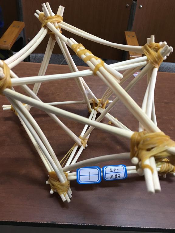 “呀,这怎么一高一低了?”最后倒计时的时候发现模型走样的范利荣惊呼道,额头的发丝被沁出的汗水浸湿。“我帮你看看吧”范中一看着一旁焦急的对手,毫不吝啬地伸出援手,只见他观察一番后仅调整了一根筷子便拯救了整个模型。“准备比赛的过程中获得很多乐趣,这些很难忘的回忆使我们觉得结果并没有那么重要”赛后范中一同学笑着说。