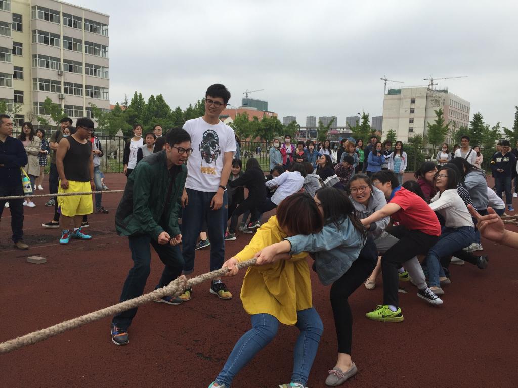 此次运动会本着“走出宿舍,走上操场”的原则,以“感受运动乐趣,做不一样的你”为口号,鼓励全院师生共同参与。最先开始的“袋鼠跳”引来了众多同学的驻足围观,看似简单的运动,实际操作起来却是啼笑皆非。 随后,“十一人十足”众人站成一排,喊着响亮的口号大步流星的向终点线奔去,脚踝的红绳子并没有禁锢她们的双脚。让对手们望尘莫及的同时,又从心底里为他们鼓掌欢呼。拔河比赛在最后进行,各个班级都派出了重量级选手打头。哨声一响,整个操场都回荡着呐喊助威的声音。豆大的汗珠从额头上沁出,每个人都铆足了劲儿拉着绳子。